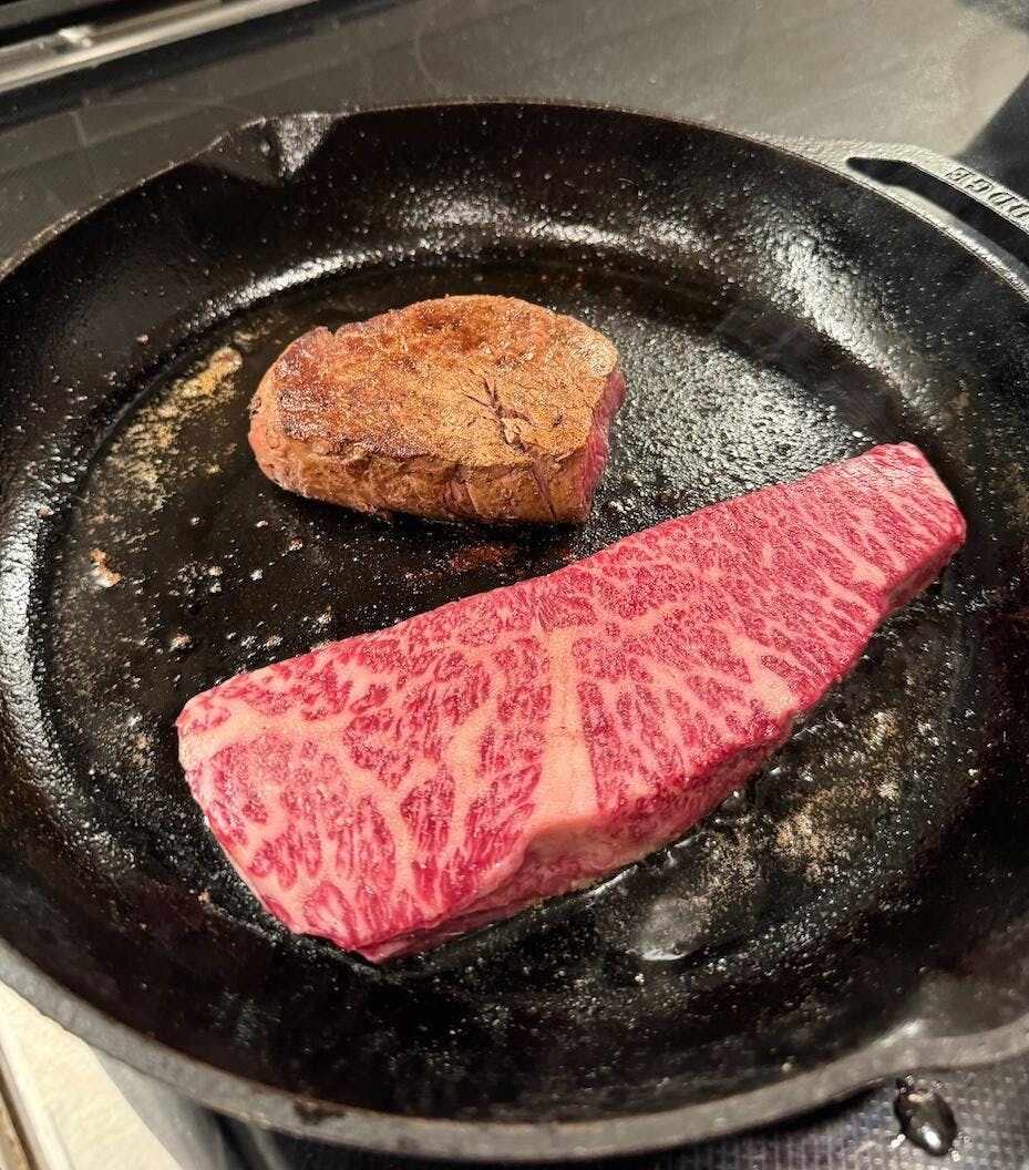 Don't get me wrong, this is really an excellent steak but hard to eat more than a few pieces due to how rich the texture is. Don't eat alone in my opinion.